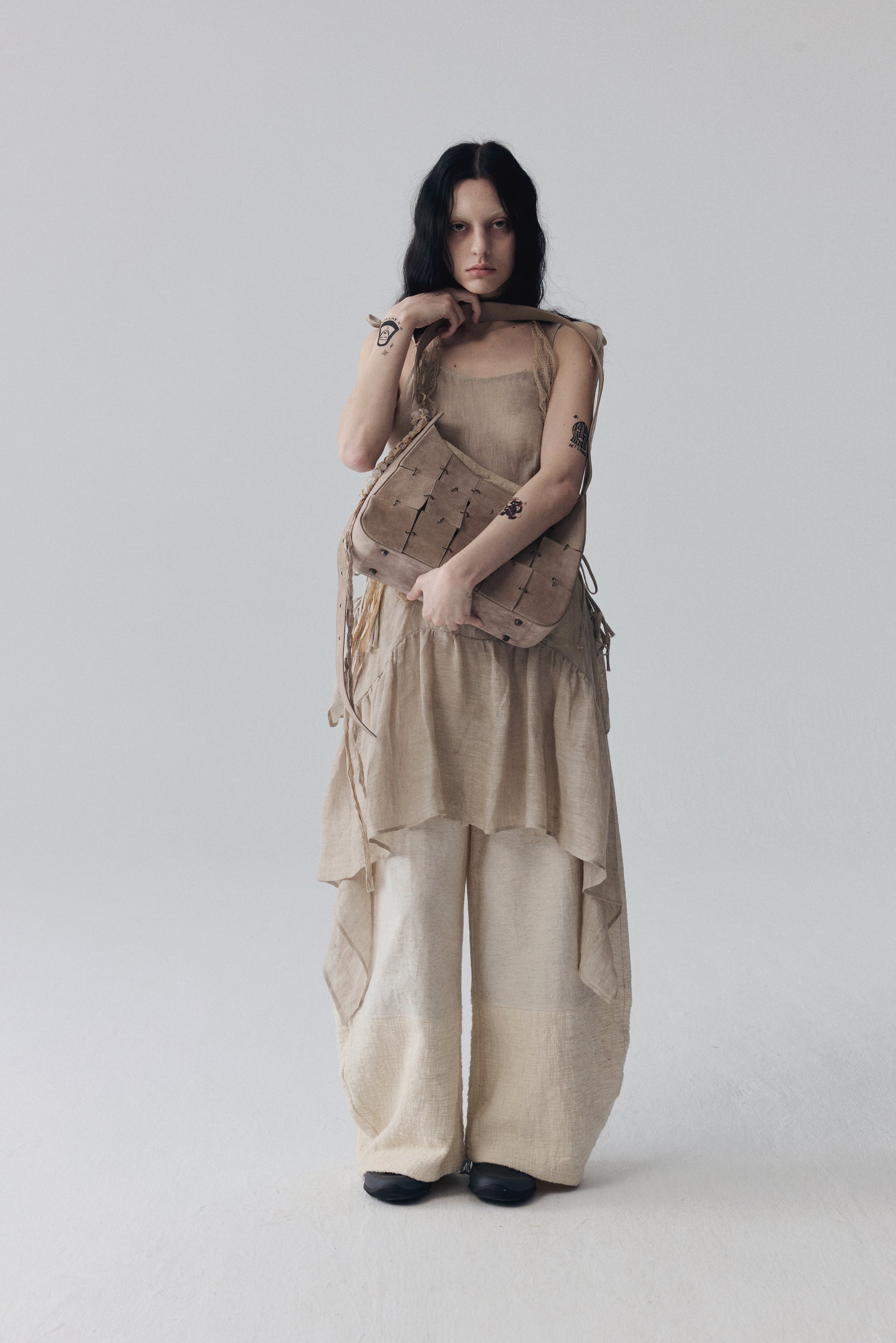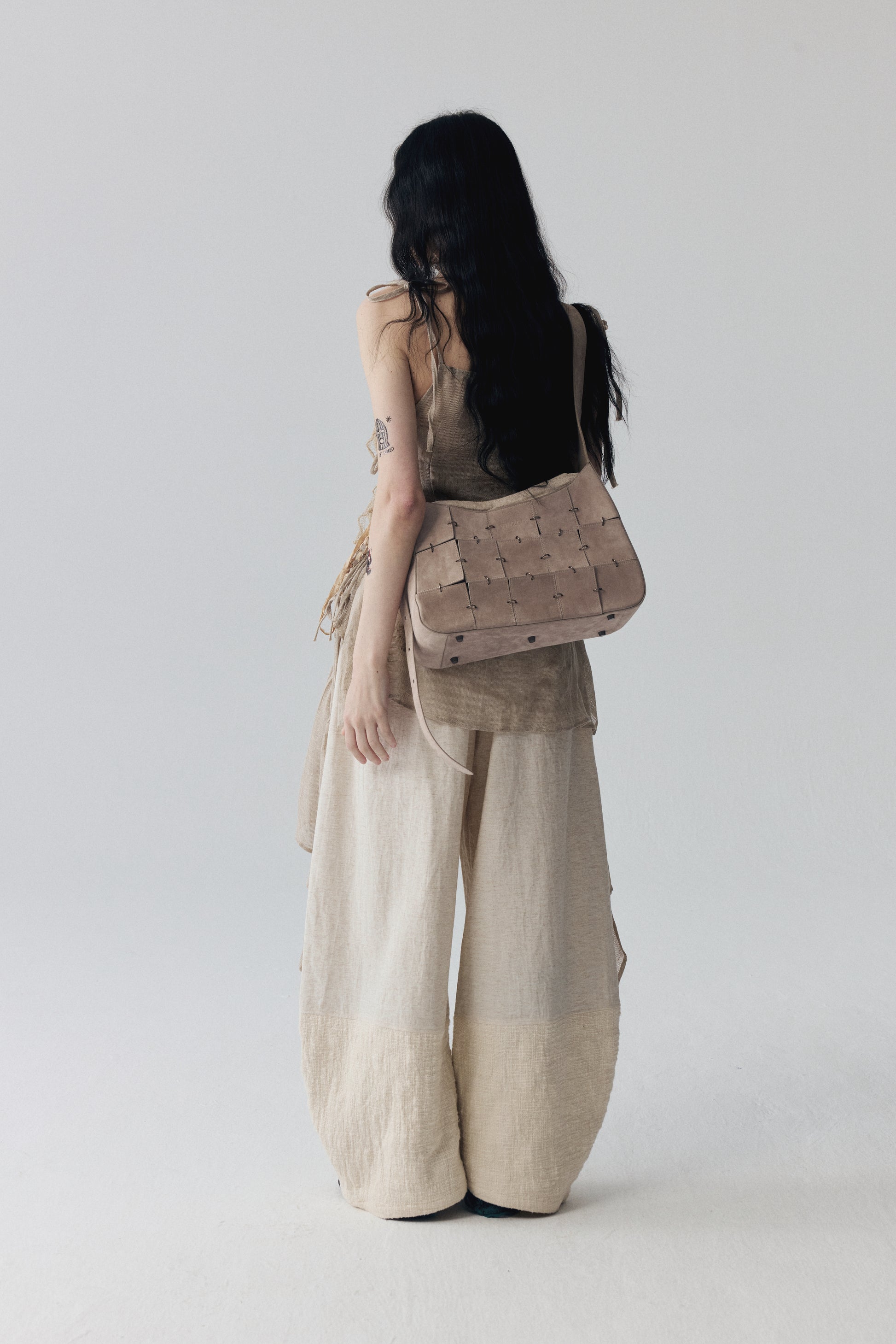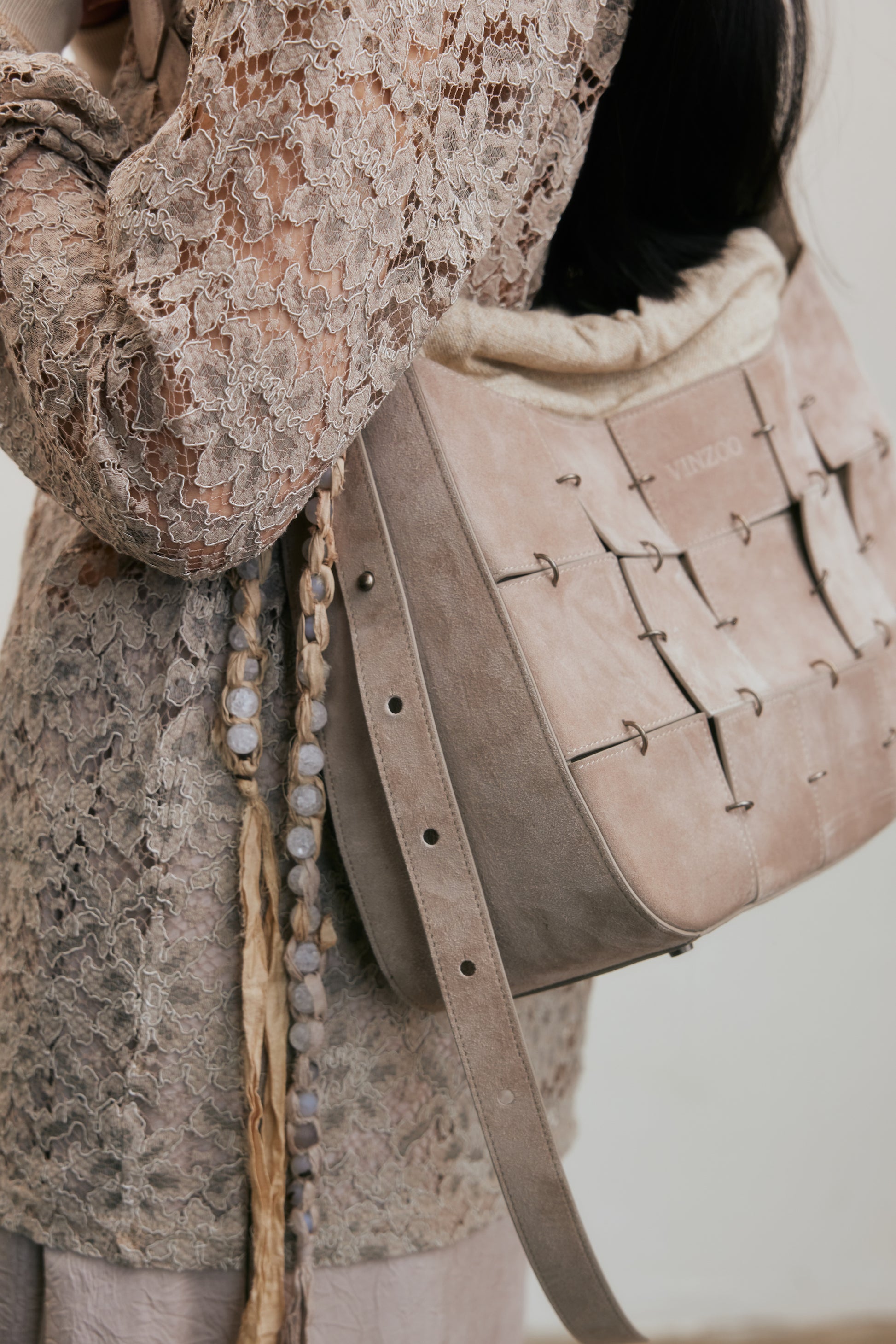 Grey Pink Suede Leather Crossbody Bag(Median)