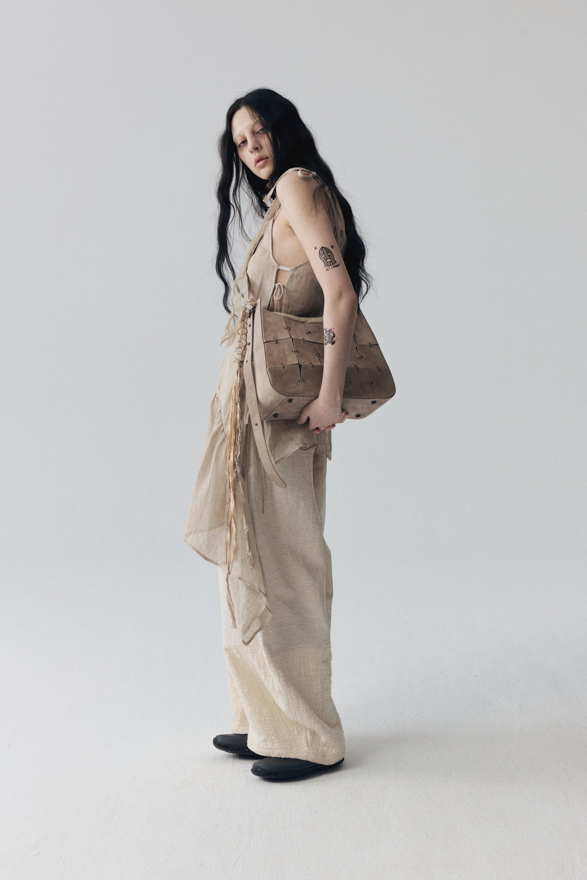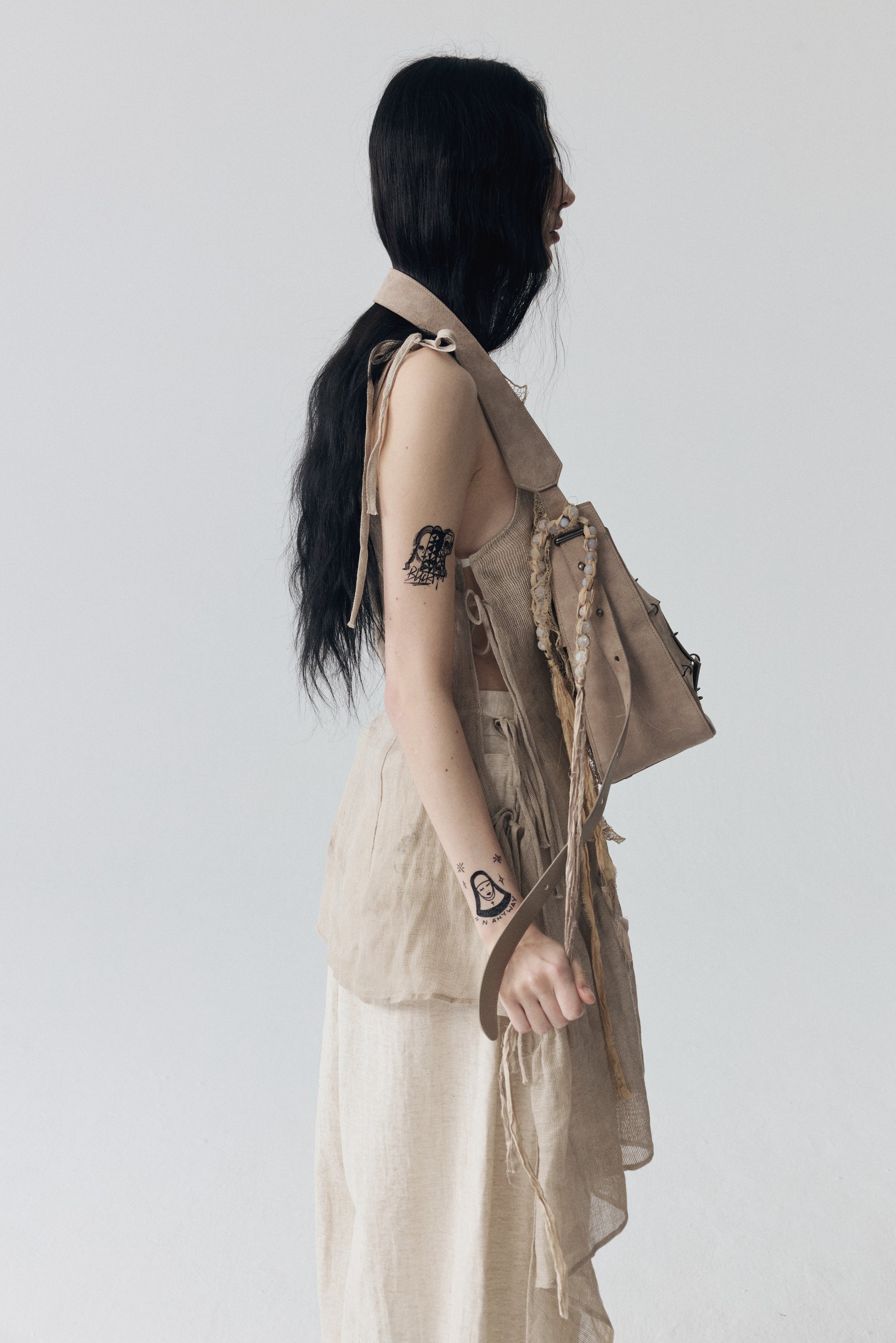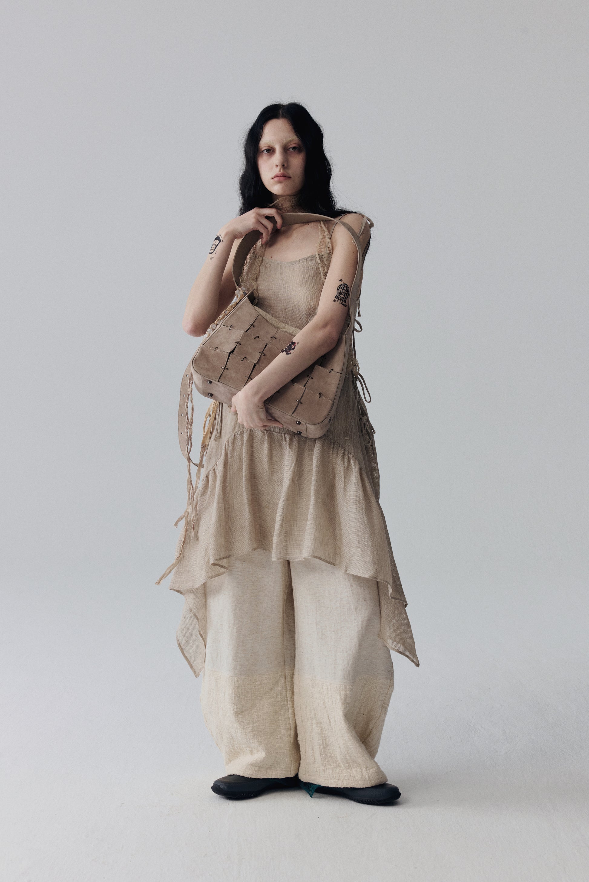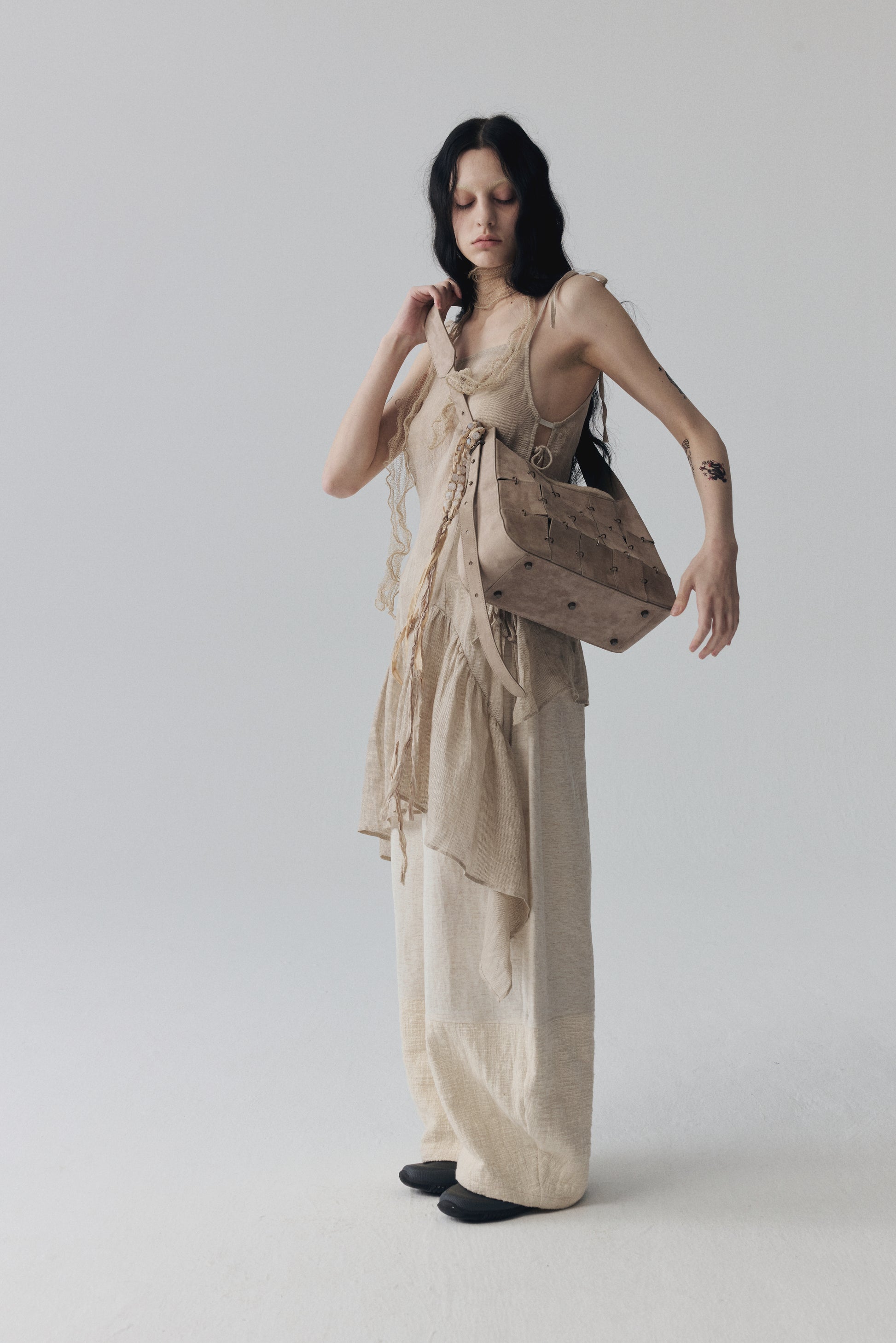Grey Pink Suede Leather Crossbody Bag(Median)