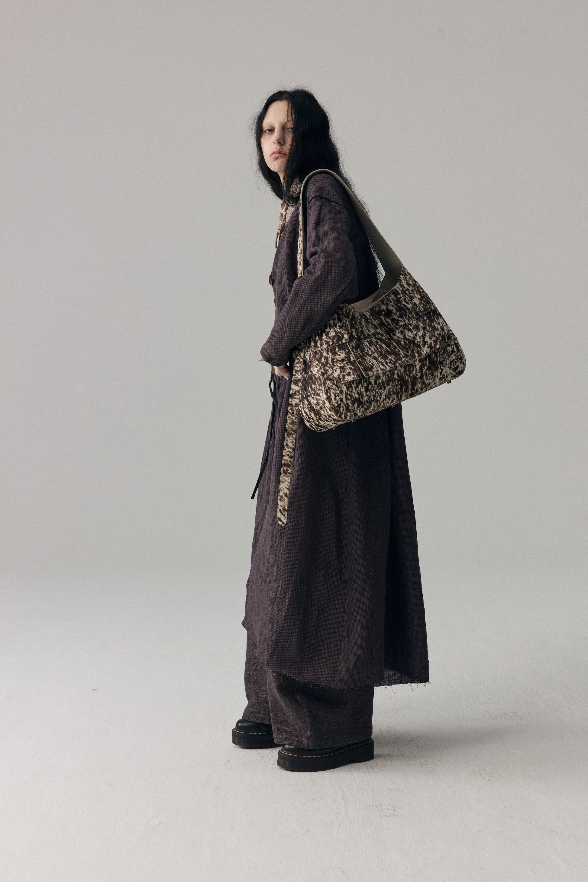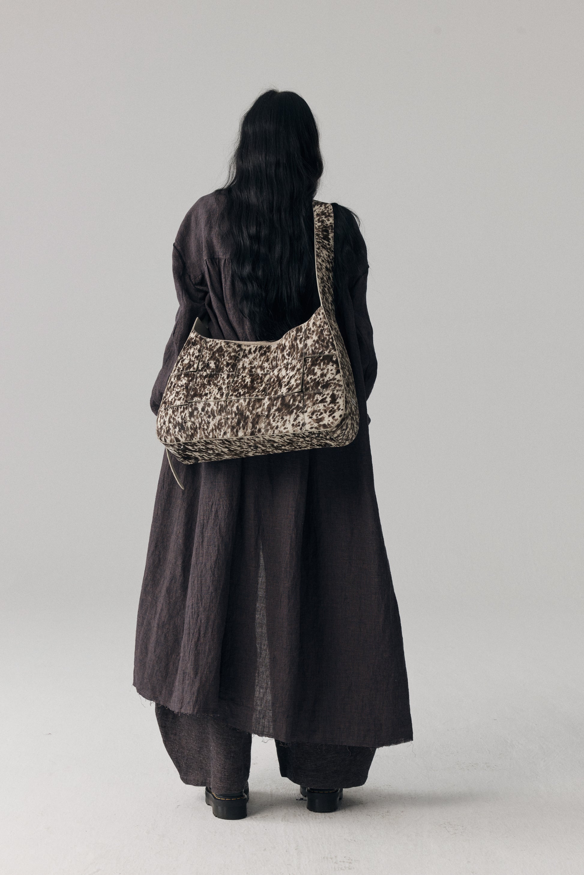 Natural horsehair leathers undergo a splatter dyeing process, resulting in unique variations in both colour and size of the dye marks, making each piece one of a kind.