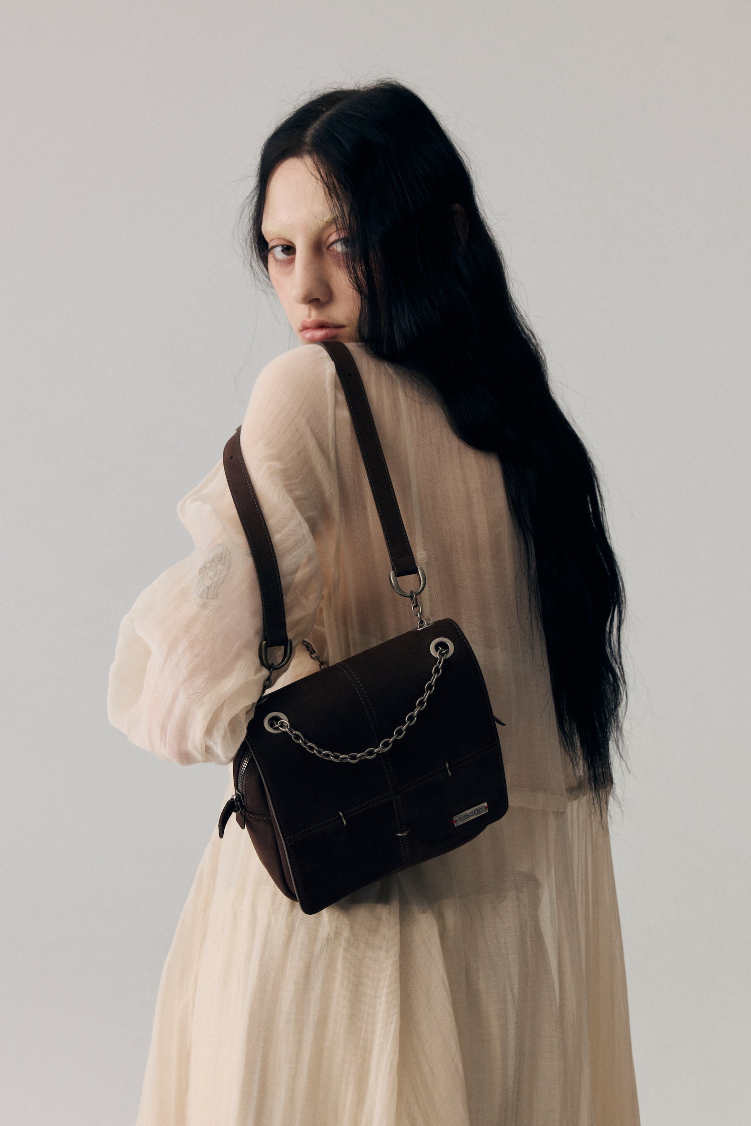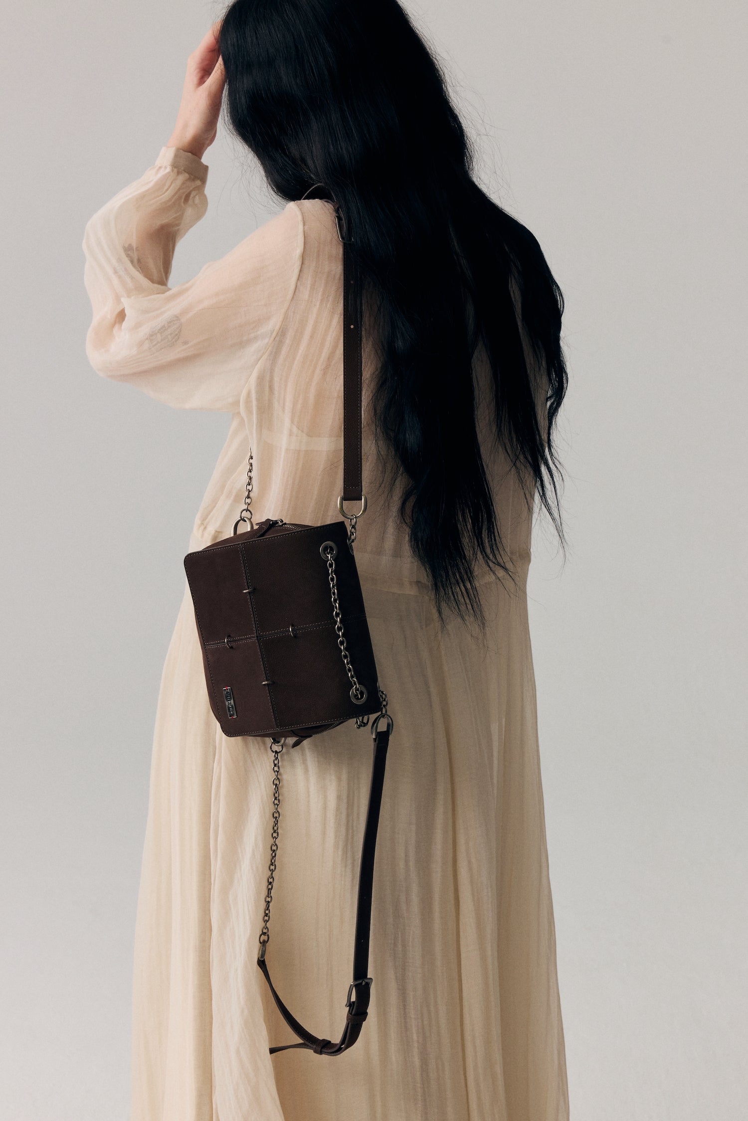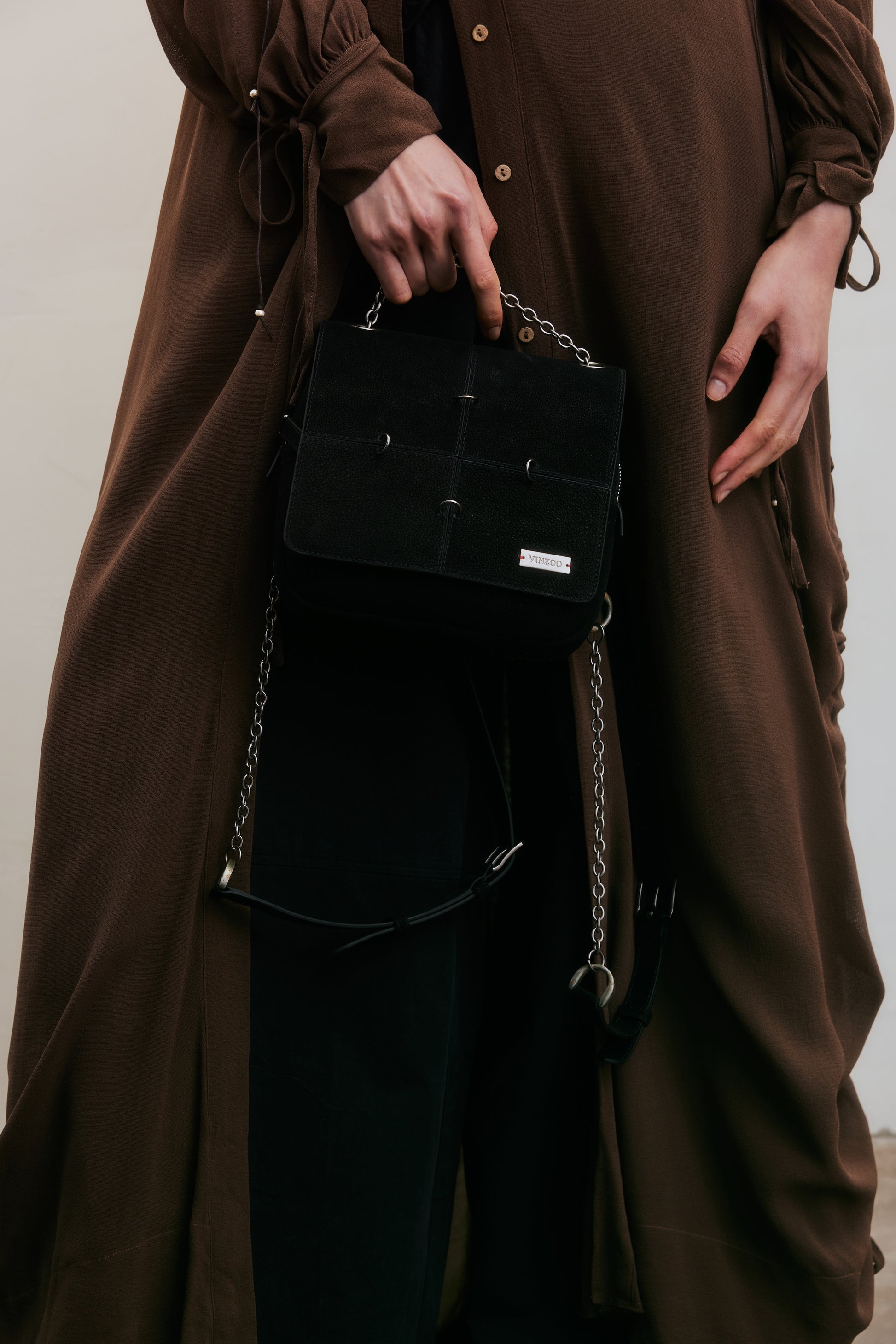 - Oxidized vintage-effect metal buckle