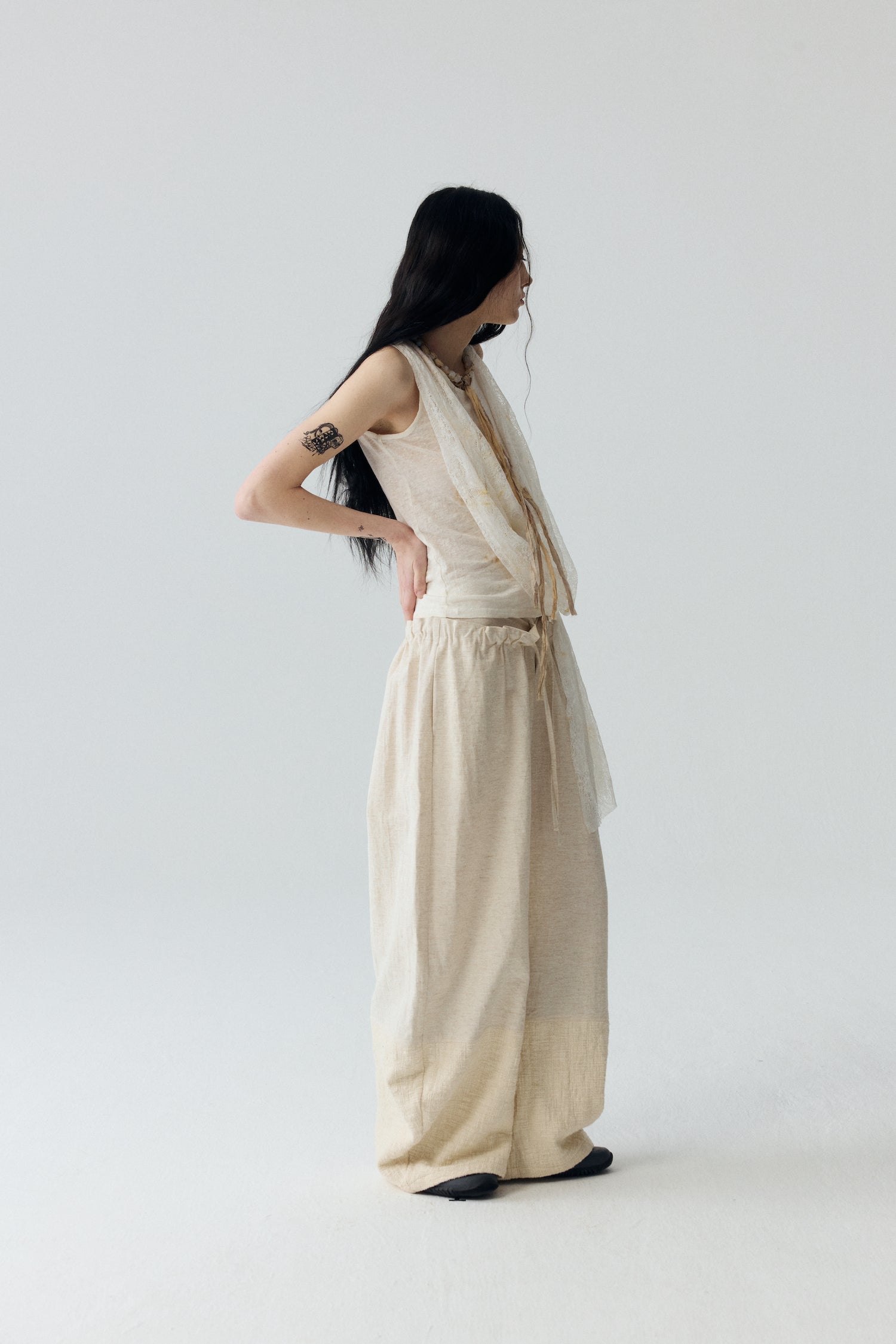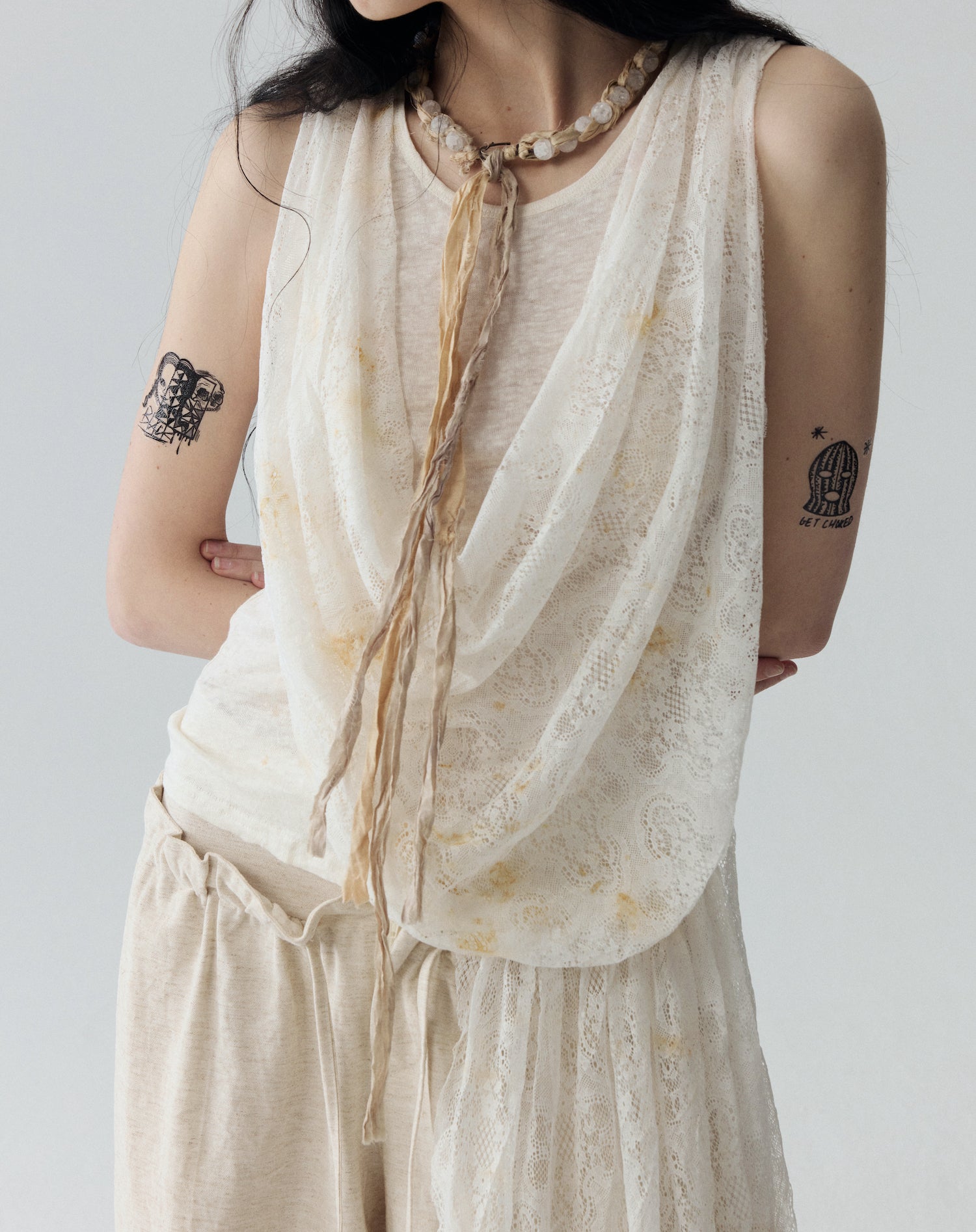 Tea-dyed lace / Linen